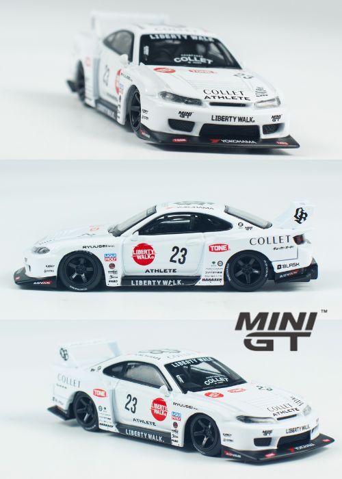 Unleash race-bred style with the MINI GT Nissan LB-Super Silhouette S15 Silvia Athlete in 1:64 scale (model code: MGT01054-CH).